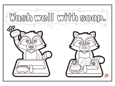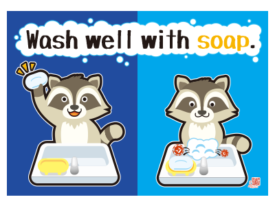 手を洗って欲しいということで、「せっけんで手洗い」のA4横ポスターを作りました。